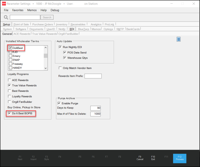 To enable the Do It Best BOPIS parameters: