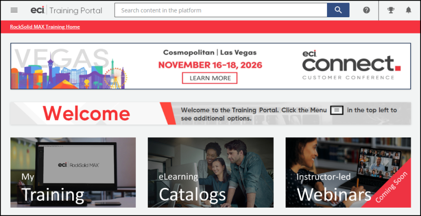 When you access the Training Portal, the options you see will depend upon your product needs.