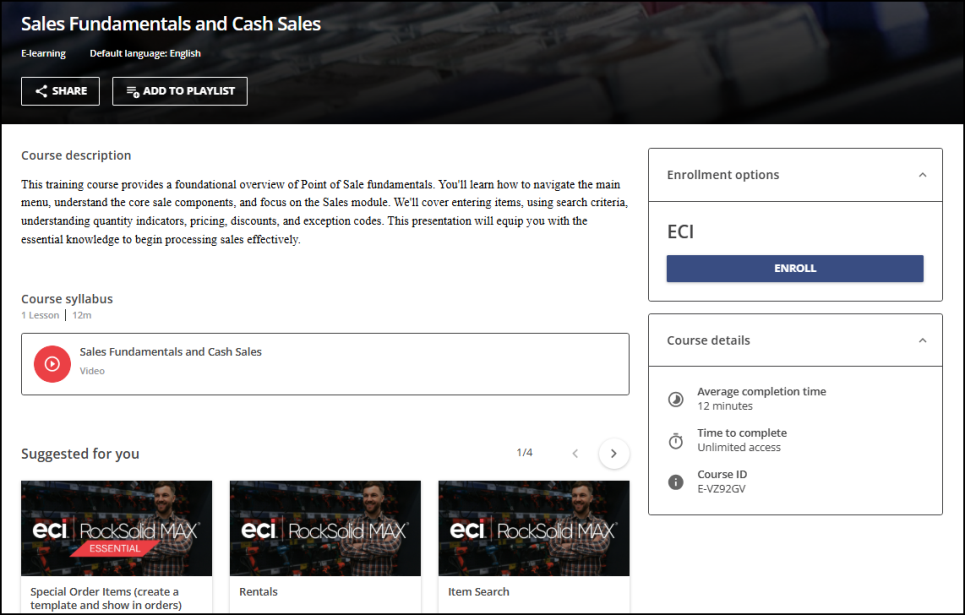 3. Click a video in the list to read the course description. Here, you can also see related training videos and the average completion time for the course.