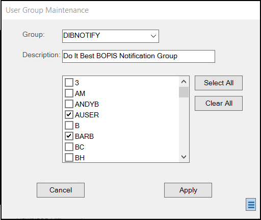 Use these instructions to create a notification group that activates when BOPIS orders show up in the application. When these user IDs are added to the notify group, the application sends an email to each team member when the BOPIS order is detected.