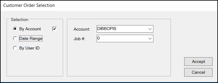 3. From the Account list, choose the Do It Best BOPIS account you created for this process and enter 0 in the Job # field.
