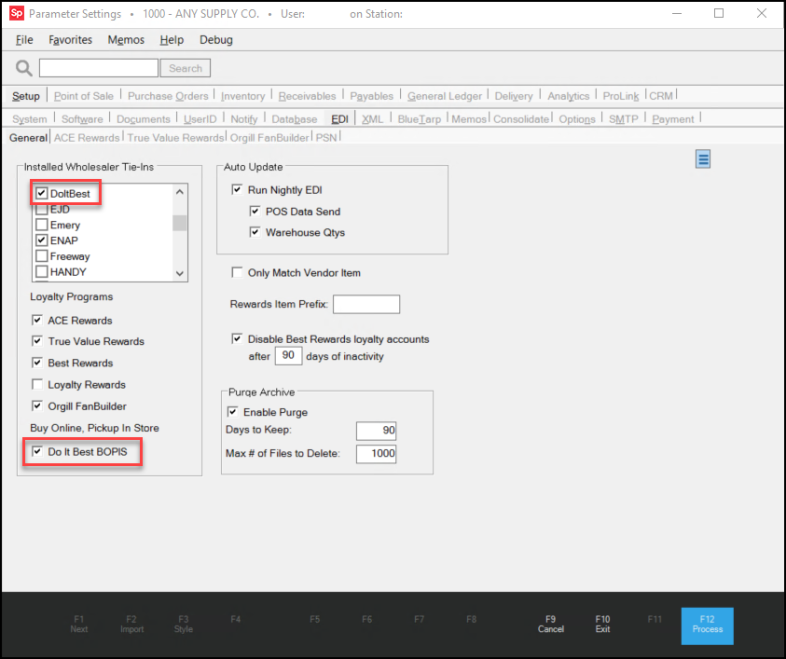 3. In the Installed Wholesaler Tie-Ins list, choose the Do It Best check box.