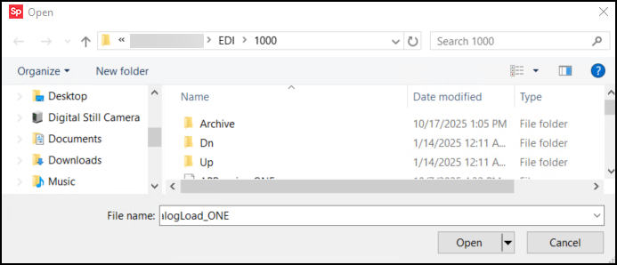 4. Select Catalog Load from the Function list.